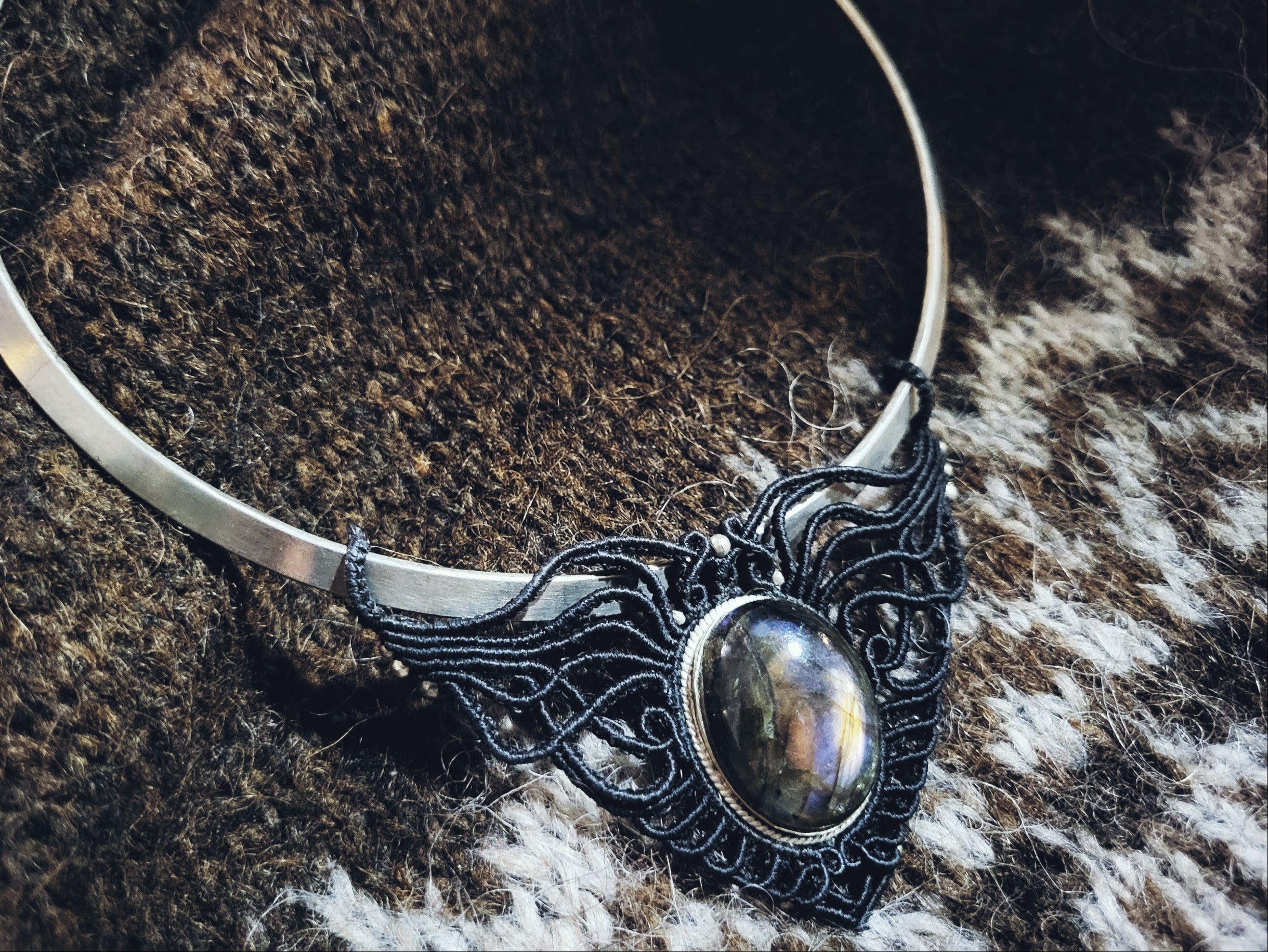 Colliers Torques Micro-macramé et pendentifs Labradorite - Collier Bohème